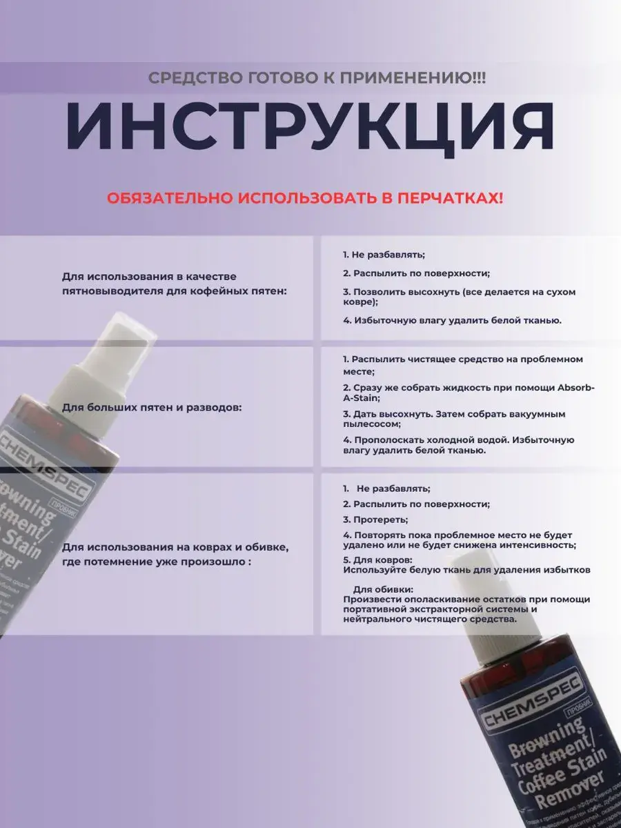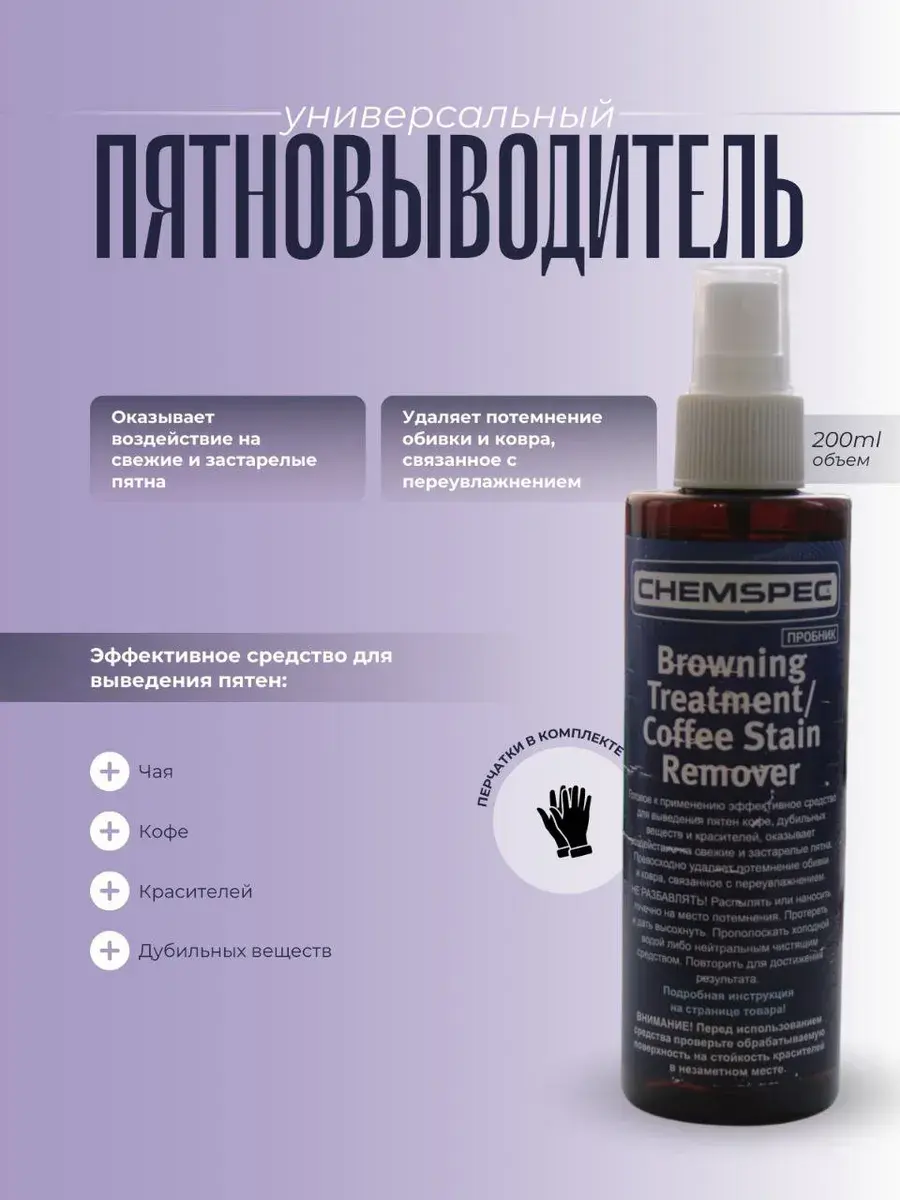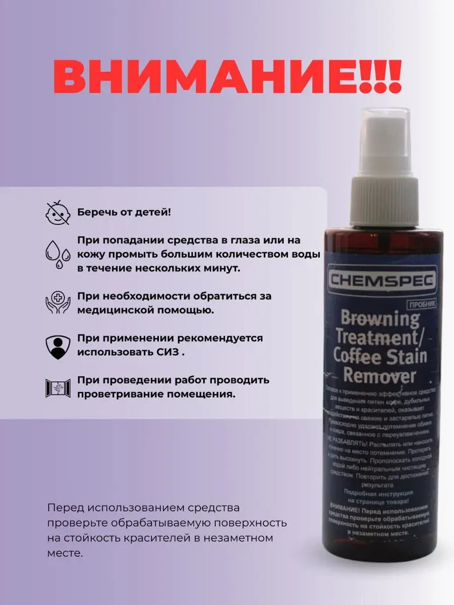 Browning Treatment/Coffee Stain Remover от Chemspec (Пробник 200 мл) - Готовый к применению эффективный кислотный пятновыводитель для удаления пятен кофе, дубильных веществ и красителей. Оказывает воздействие на свежие и застарелые пятна. Превосходно удаляет потемнение обивки и ковра, связанное с переувлажнением.