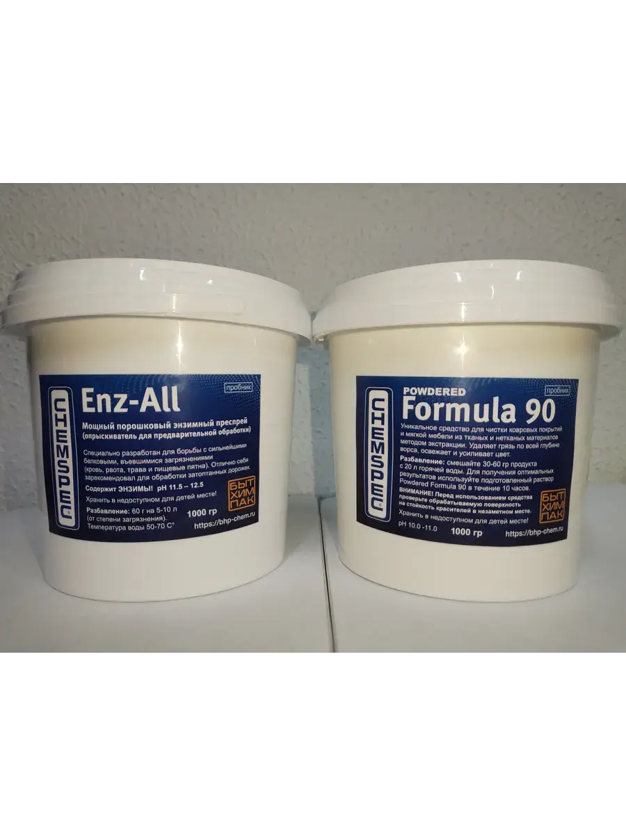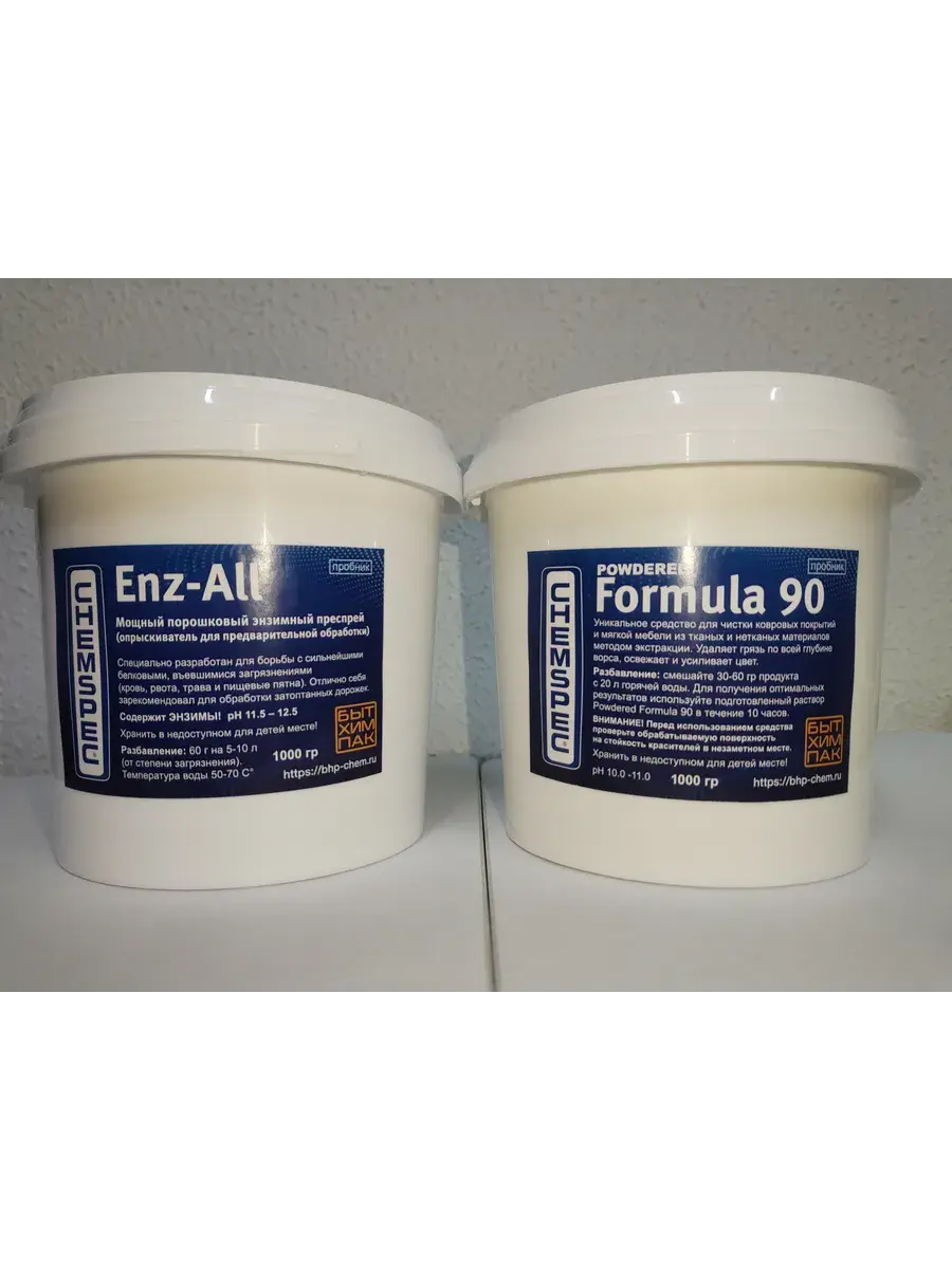 В состав Пробного набора "Классик" вошли 2 продукта-бестселлера от CHEMSPEC в пробниках,: Powdered Formula 90 (1000 гр) + Enz-All (1000 гр). Chemspec Powdered Formula 90 - Основное средство для чистки ковровых покрытий и мягкой мебели(1 кг).