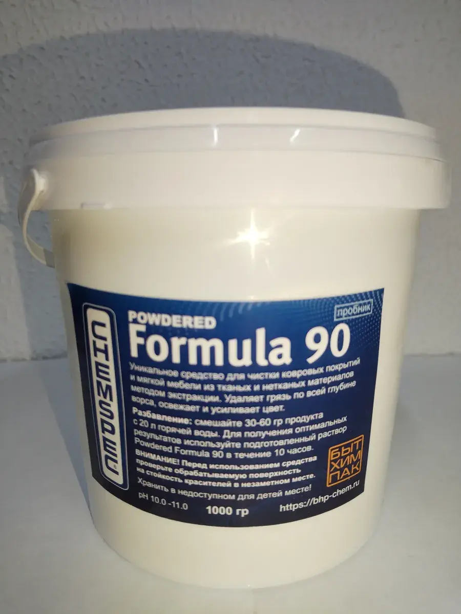 Powdered Formula 90 – уникальное средство для чистки ковров и ковровых покрытий методом экстракции (пробник). Удаляет грязь по всей глубине ворса с синтетических и натуральных волокон. Не оказывает разрушающего воздействия на текстильные красители. Разрешено для применения на шерсти. Смачивает поверхность, проникая глубоко во все ее неровности и поры, освежает и усиливает цвет, замедляет последующее загрязнение. Может использоваться в поломоечных машинах и экстракторах. Легко разводится, содержит специальные агенты, защищающие оборудование.