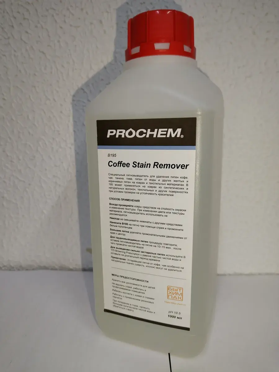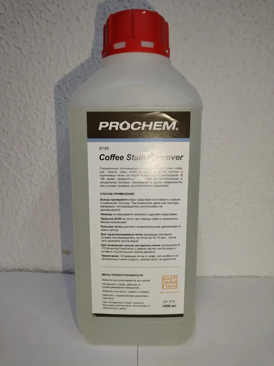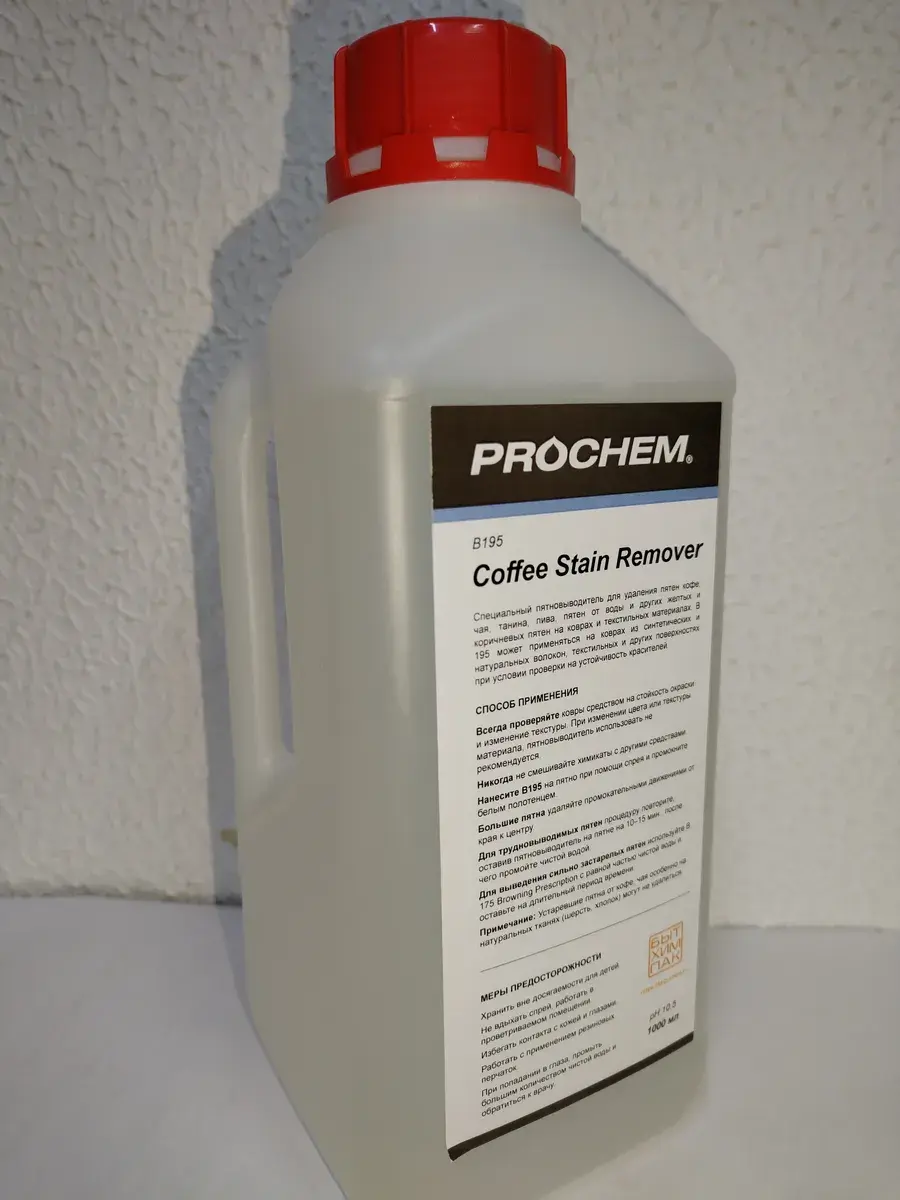 Coffee Stain Remover – Специальный пятновыводитель для удаления пятен кофе, чая, танина, пива, пятен от воды и других желтых и коричневых пятен на коврах и текстильных материалах. В195 может применяться на коврах из синтетических и натуральных волокон, текстильных и других поверхностях при условии проверки на устойчивость красителей.
