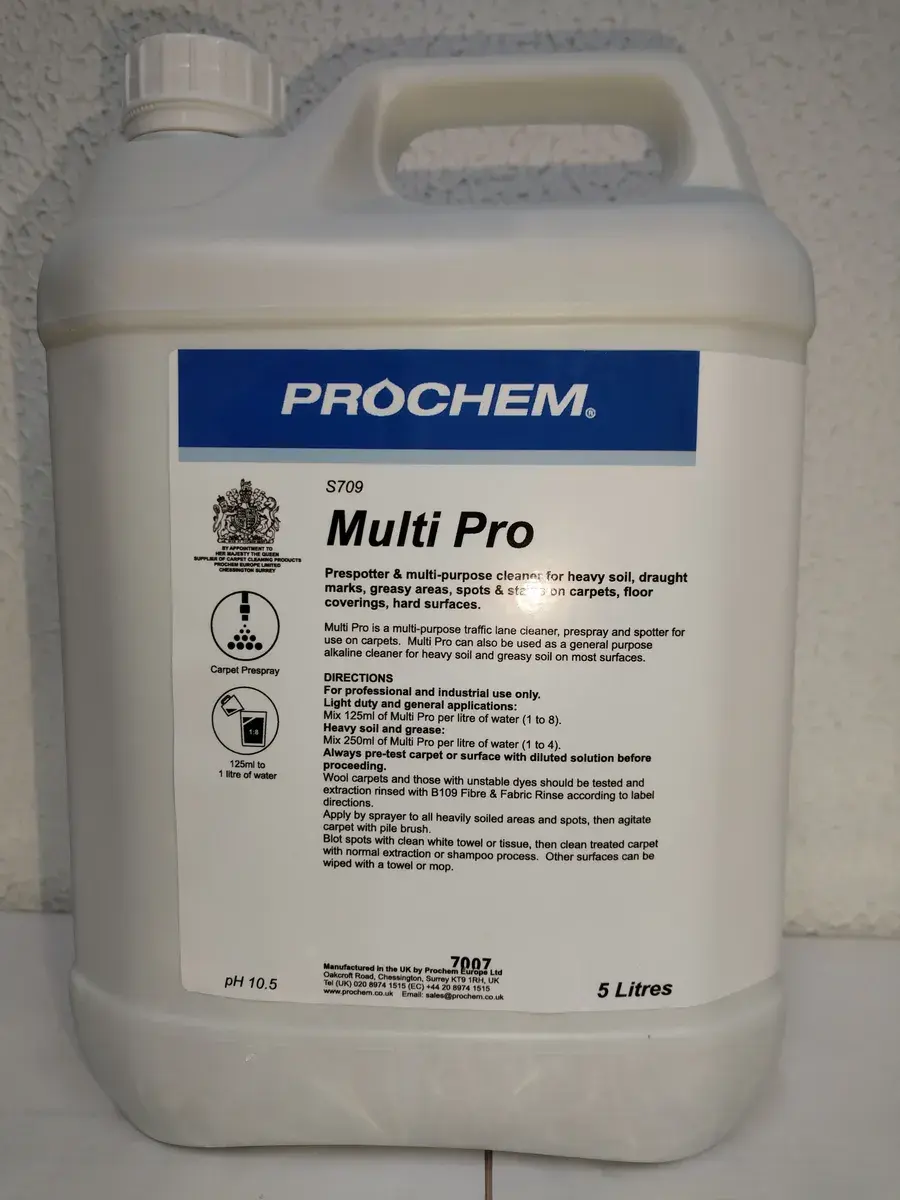 Multi Pro – многофункциональное средство для предварительной обработки сильно загрязненных участков ковров, ковровых покрытий и прочих твердых поверхностей. Оно может быть использовано для генеральной уборки сильно загрязненных и засаленных напольных покрытий.